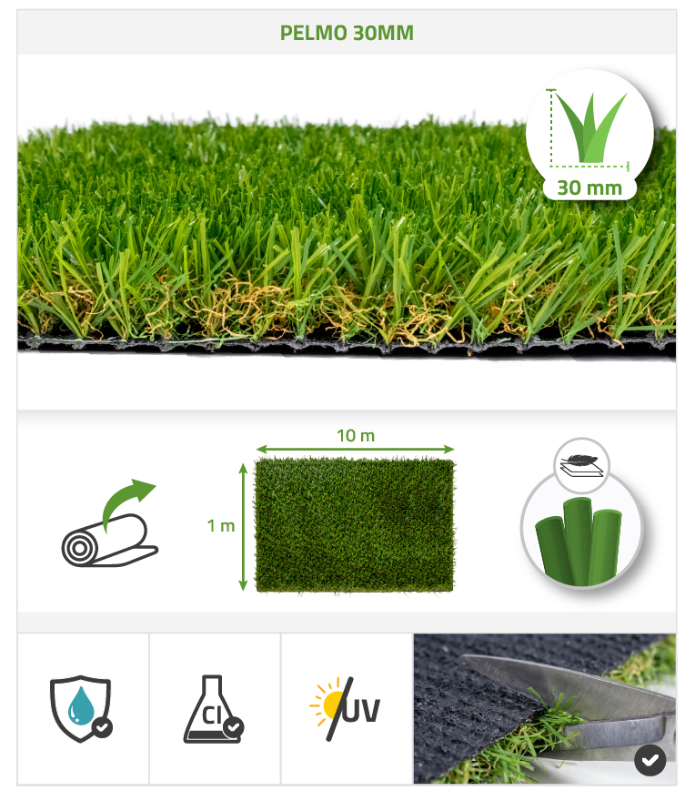 Gazon synthétique 30mm PELMO : un rendu naturel et un toucher agréable sous les pieds